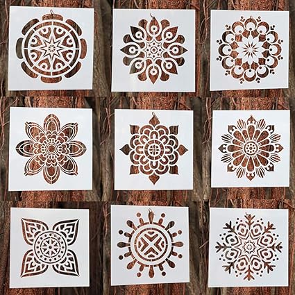 In this collection, you can find feather stencils, world map stencils, dreamcatcher stencils, stunning flower stencils, individual damask stencils, a few large tree stencils, stencils for the holidays decor!